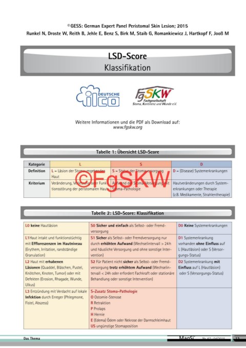 Definition L = Läsion der Stomaumgebenden S = Status der Stomaversorgung D = (Disease) Systemerkrankungen